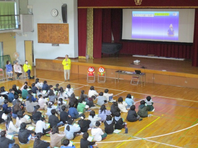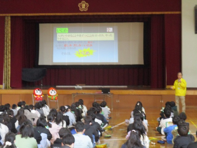 人権擁護委員の方を学校にお招きし、人権について体育館で教えてもらいました。人権がどんな権利なのかを教えてもらい、それを脅かす身近な人権侵害、いじめについて考えました。今日教えてもらったことを忘れずに、自分と友達の人権を大切にして学校生活を過ごしてほしいです。