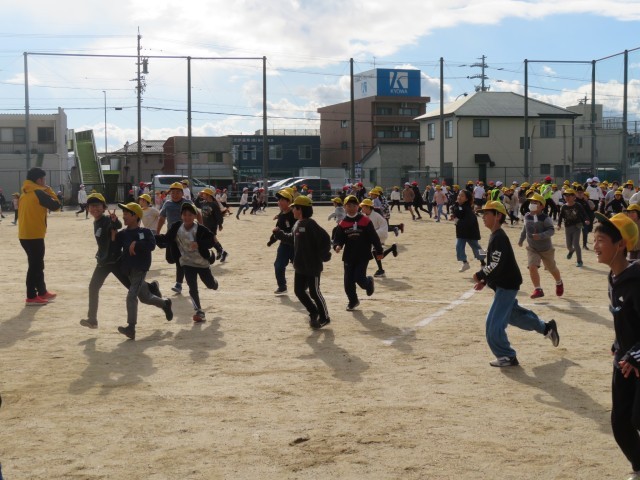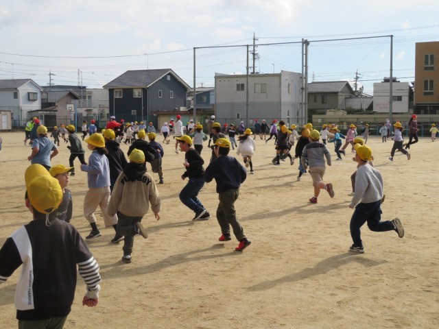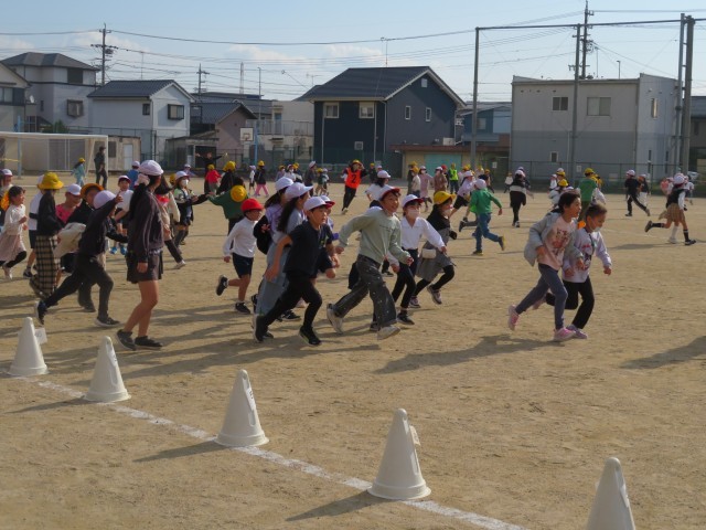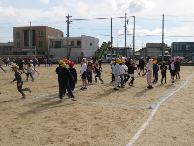 12月2日(火)・4日(木)の20分放課、児童会主催の「後期わくわくタイム」が行われました。2日は1・3・5年生、4日は2・4・6年生が運動場でドロケイをしました。児童会役員や体育委員などが警察となり、他の人たちは捕まらないように逃げまわっていました。他学年の子と交流できた良い機会となりました。