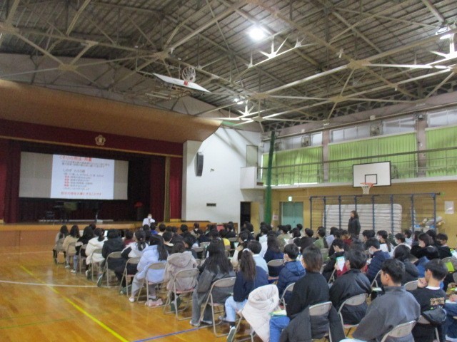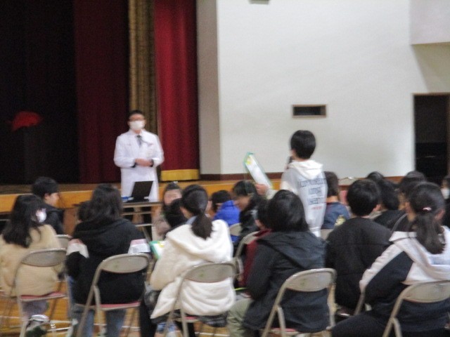 1月8日の5時間目に、薬剤師の方を招いて薬物乱用防止教室を行いました。どの子もたくさんメモをとり、薬物乱用の恐ろしさを学んでいました。授業の最後には、この日学んだことを自分の言葉で薬剤師の方に伝えることもできました。
