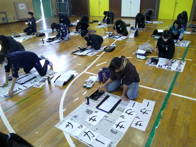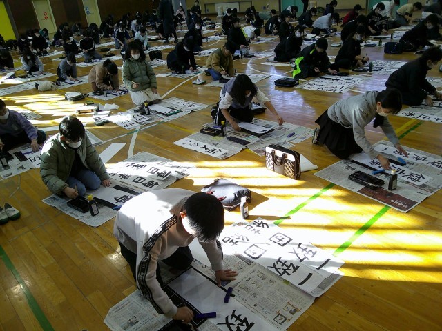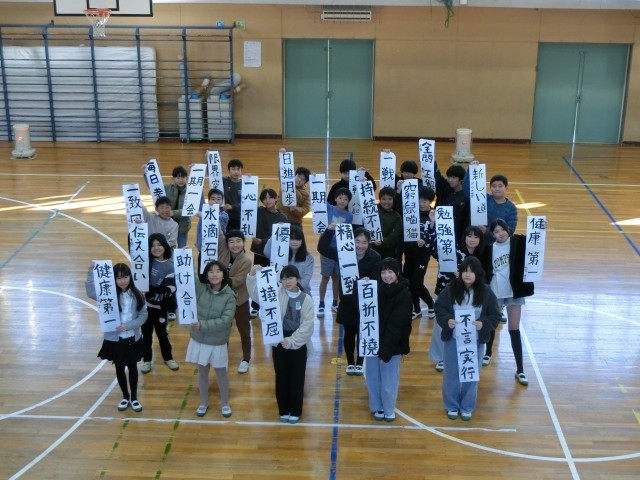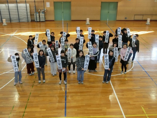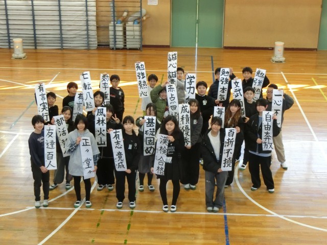 1月9日に学年で書初め大会を行いました。中学校という新たなステージに上がる1年に向けた目標や言葉を自分の思いを込めて書きました。それぞれが考えた言葉には個性があふれていました。