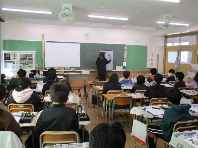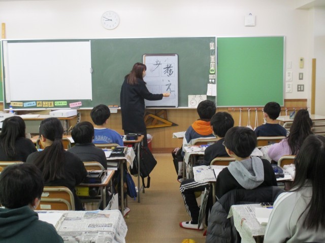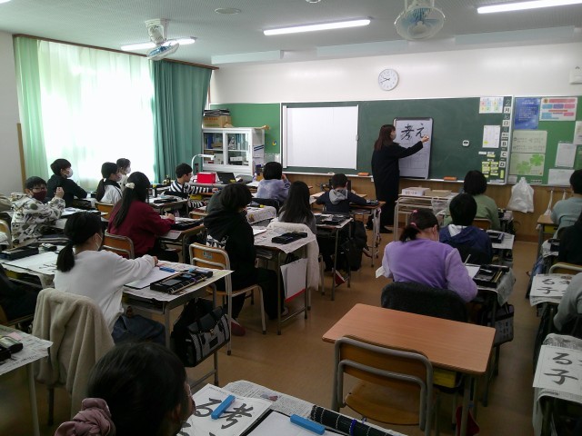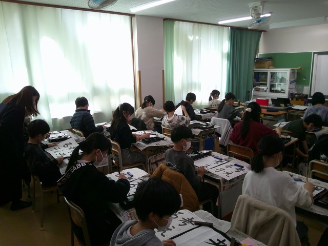 今日は5年生最後の書の時間でした。今までに学習してきたことを全て使って「考える子」という文字を書きました。足立先生からポイントを聞き、お手本をしっかり見て丁寧に書いていました。