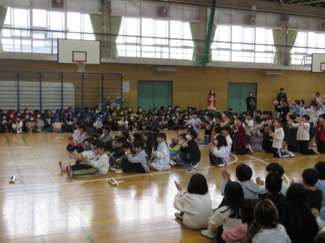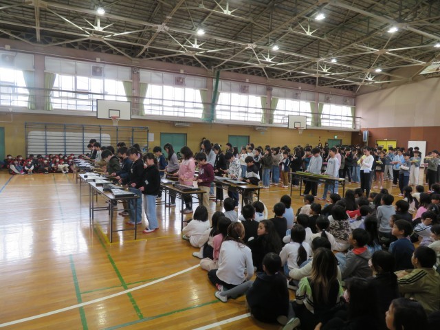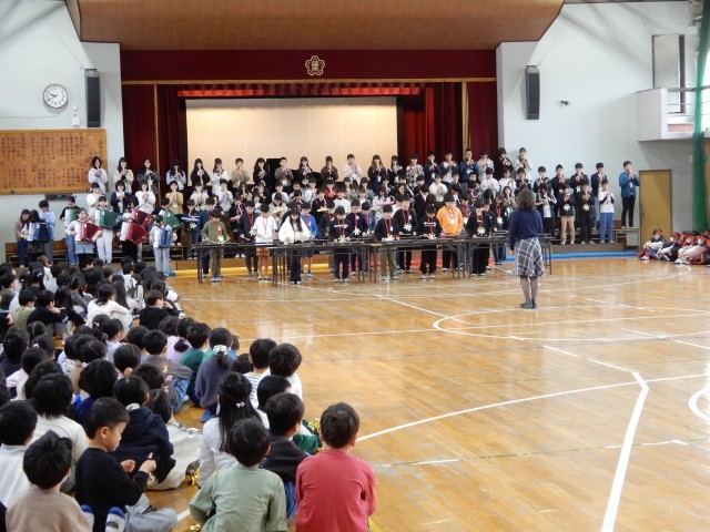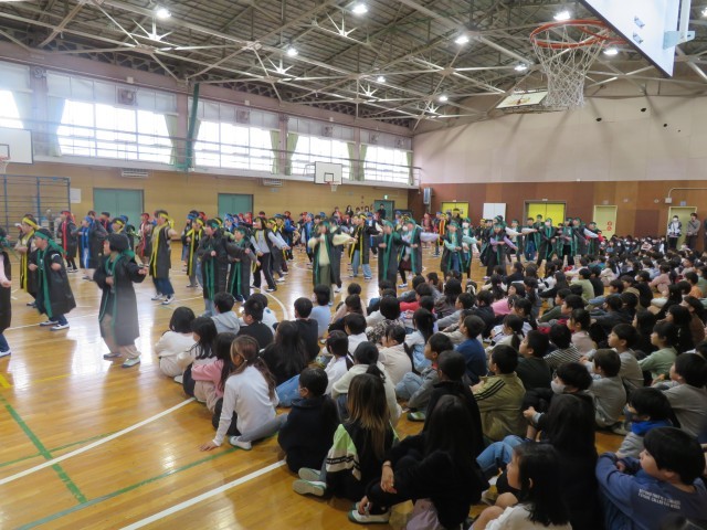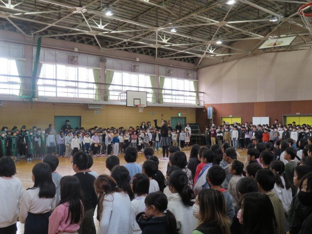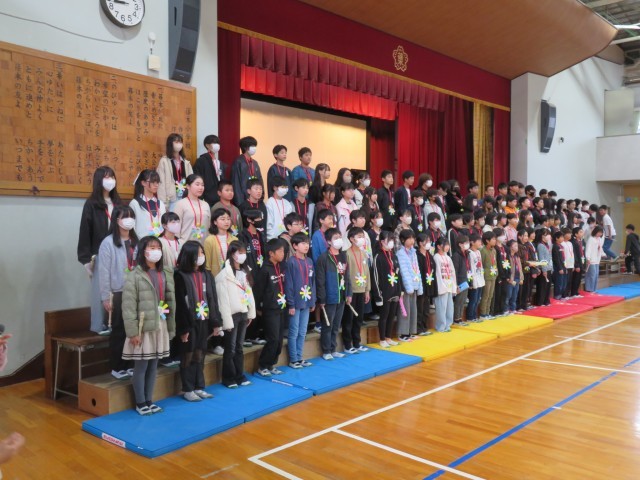 在校生のみなさんは、6年生のために一生懸命練習してきました。歌あり、ダンスあり、呼びかけあり。みなさんとても真剣に、素晴らしいパフォーマンスを見せてくれました。途中で感涙にむせぶ6年生の姿も見られました。お返しに、6年生が合奏と歌を贈ってくれました。そして1年生から6年生まで揃って校歌を歌うのは、この瞬間が最後となります。篠木っ子が一体となった歌声が、体育館中に響き渡りました。校長先生からも学校評議員の方々からも「感動しました」というお褒めの言葉をいただきました。6年生にとって、心に残る、とてもよい想い出となったことでしょう。