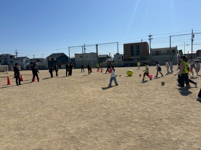 運動場には子どもたちの元気な声が響き渡り、みんなで力を合わせてミッションに取り組む姿や、ハンターから必死に逃げる姿が見られ、大いに盛り上がりました。
