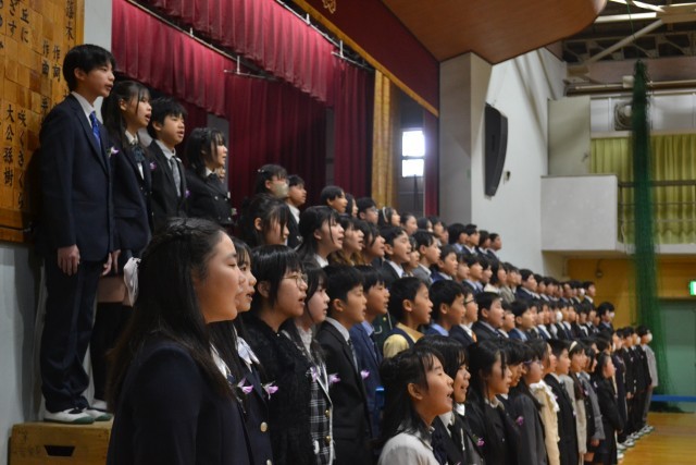 全員で感謝の言葉を紡ぎます。6年生が揃って歌う最後の校歌、「最後のチャイム」…。