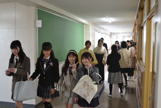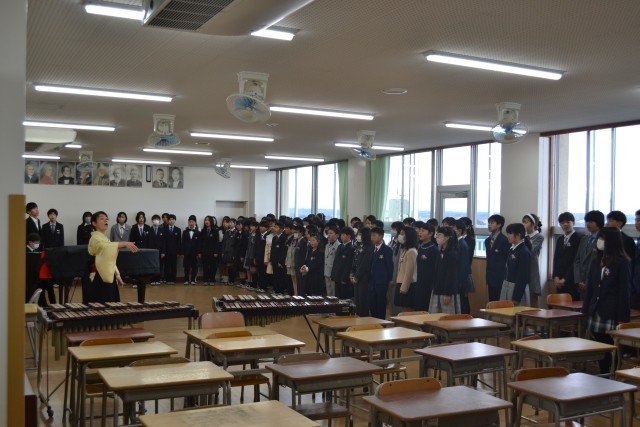小雨がぱらつく中、子どもたちが登校してきました。第79回卒業証書授与式が挙行されようとしています。