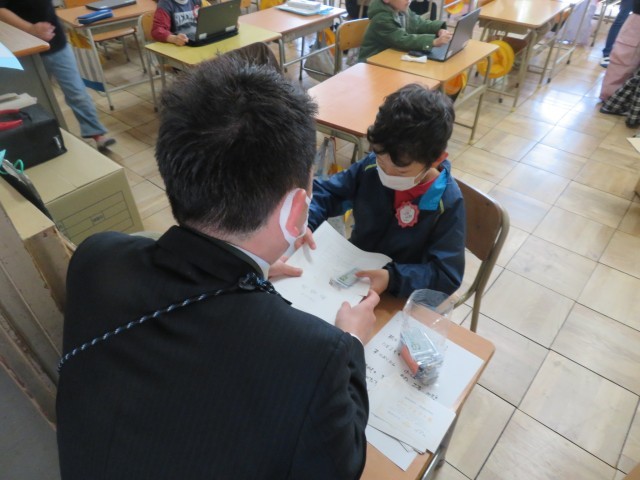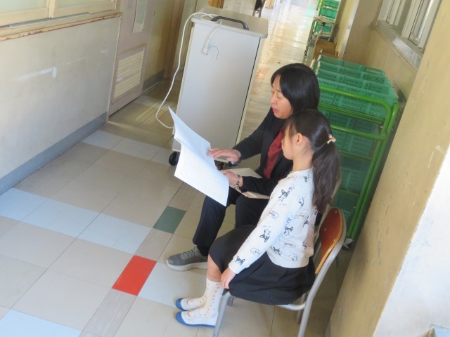担任の先生方から、一人一人に「あゆみ」が渡されました。一年間、よく頑張りましたね。写真は、1年生、6組~10組の様子です。