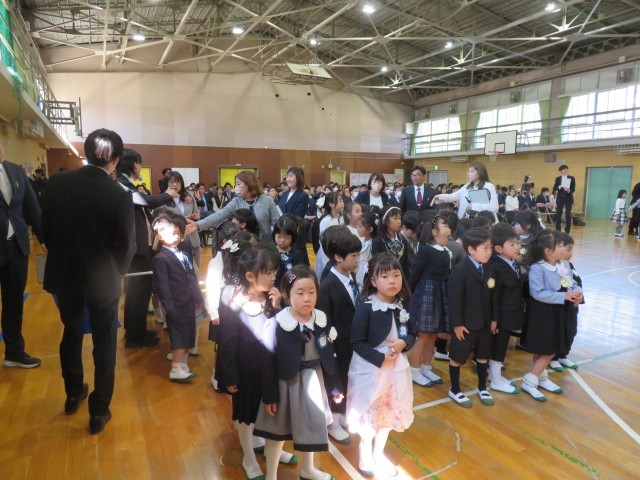 朝方はまだ肌寒さが残っていたものの、爽やかな天候に恵まれて入学式が行われました。笑顔で挨拶を返してくれる子、緊張感が抜けずにまだ表情がかたい子。様々な表情を見せ、本日111名が篠木小学校に入学しました。