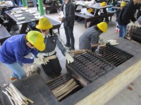 朝食の後は焼板工作をしました。ガスバーナーを使って、木の表面を焼き、飾りをつけま...