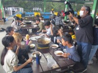 到着後から野外炊事の準備中です。