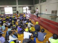 部屋長会で、部屋長の子たちが今日のふり返りと明日の連絡を聞きました。