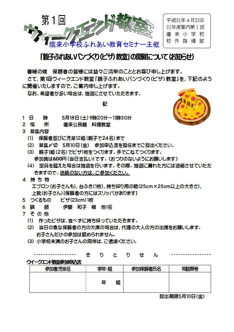 チラシはこちらから →第1回 ふれあい教育セミナー「ピザ教室」