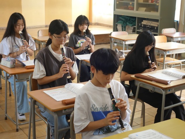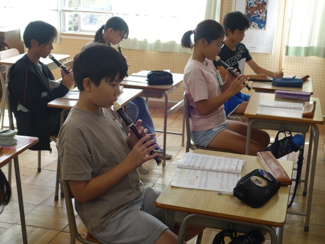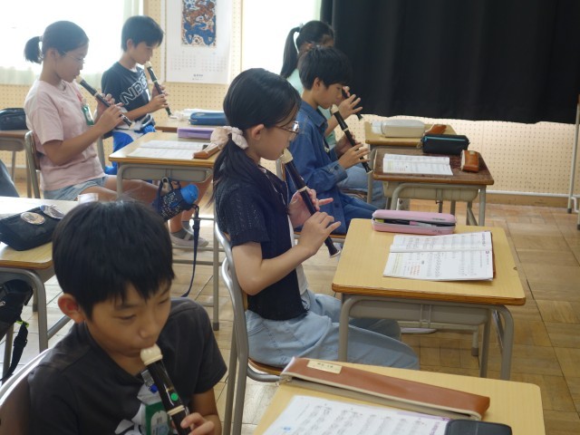 6年2組は、音楽の時間にリコーダーで「カノン」を演奏しました。高いキーの音を出すことが難しい曲ですが、みんなとても上手に演奏していました。