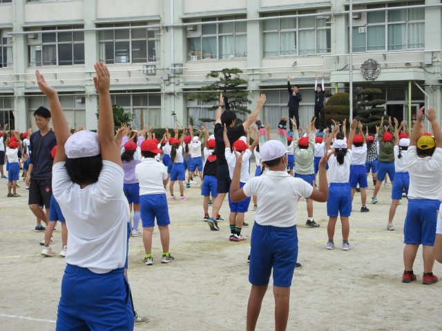 今朝の練習では、ラジオ体操の講師の先生をお招きし、ご指導いただきました。講師の先生から、それぞれの体操で、体のどの部分を意識すべきかといった具体的なポイントを丁寧に教えていただきました。児童がお話を真剣な眼差しで聞き、すぐに自分の動きに取り入れようと努力する姿が印象的でした。練習後には「上手ですね!」という嬉しいお褒めの言葉もいただきました。