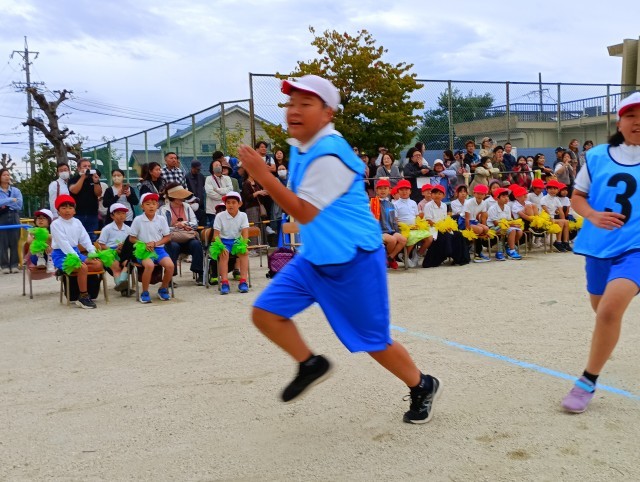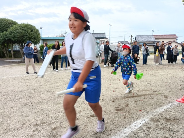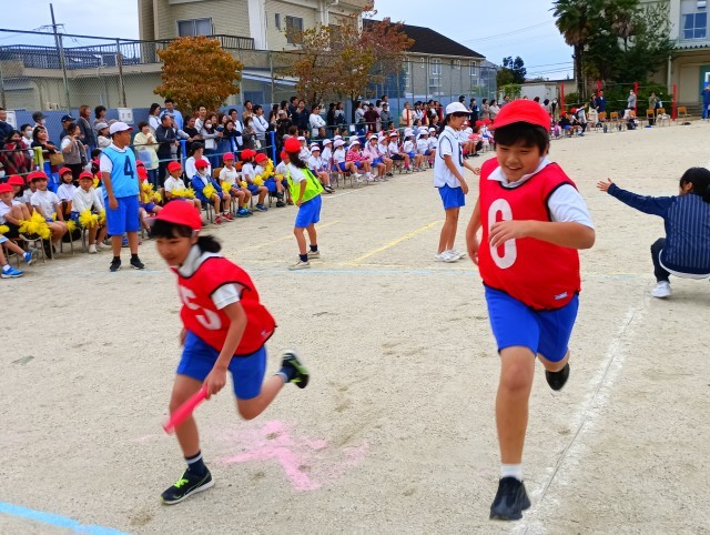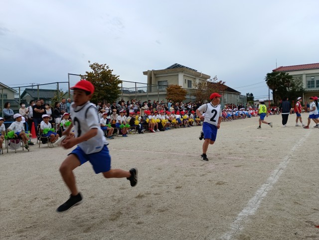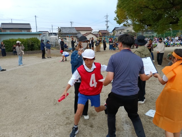 「ハラハラドキドキ!一発逆転!借り物リレー!」は5・6年の競遊です。リレーの走順によって借り物競争になります。保護者も参加し、とても楽しいリレーでした。