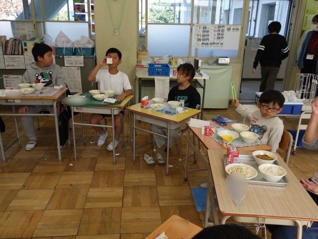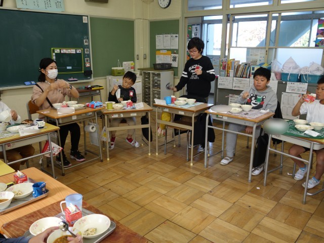 3年生は5・6組へ3~4名ずつ交流に行って、一緒に給食を食べながら自己紹介をしたり、お話をしたりしています。