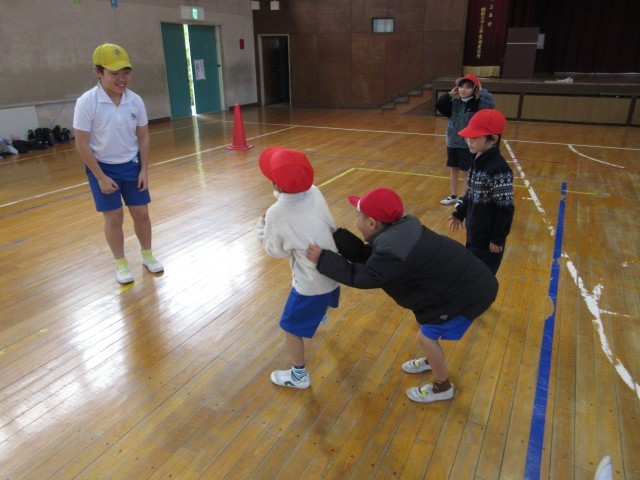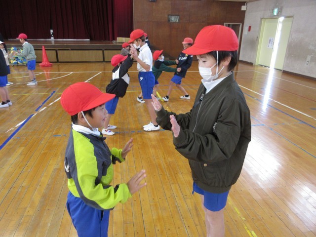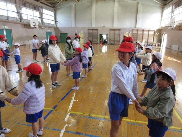 1年2組と5年1組が合同で体育の授業を行いました。