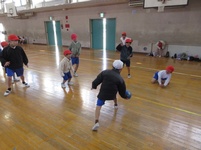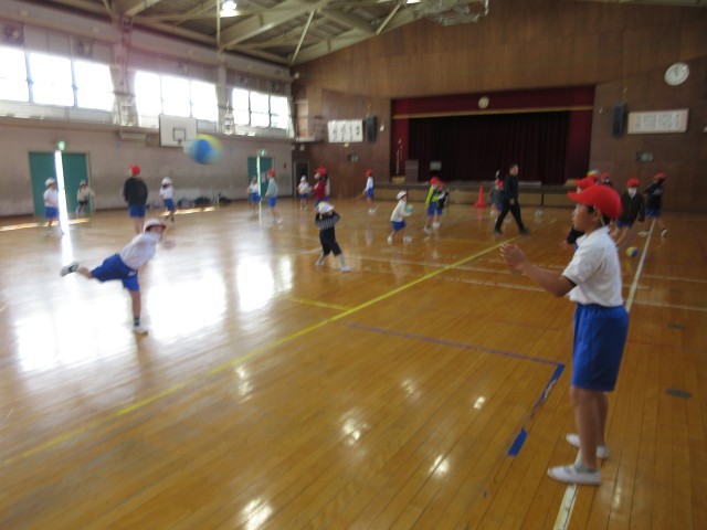 最後は「ボール当て鬼ごっこ」で体育館中を走り回り、笑顔いっぱいの交流となりました。