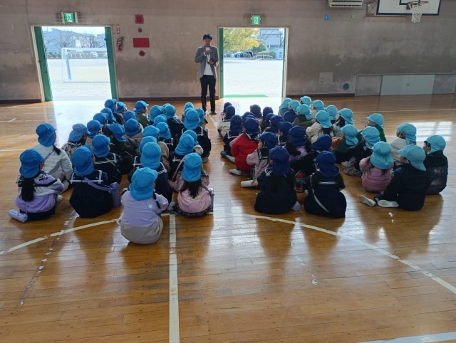 4月に入学を控えた皆さんに、小学校の楽しさを知ってもらうための大切な行事です。まずは1年生の教室で、授業の様子を見学してもらいました。良い姿勢でノートを書いたり、元気に発表したりする姿を、園児の皆さんは興味津々で見つめていました。後半は、体育館に移動してレクリエーション!みんなで「じゃんけん列車」を楽しみました。1年生が優しく教えてあげたり、園児の歩幅に合わせて歩いたりする姿に、この1年間の大きな成長を感じました。帰り際、園児の皆さんから「楽しかった!」「早く学校に行きたい!」という声が聞こえ、1年生もとても嬉しそうでした。4月の入学を、お兄さん・お姉さんたちが楽しみに待っています!