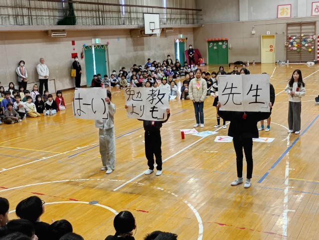 特に盛り上がったのは、6年生と先生方の対決コーナーです!真剣勝負を繰り広げる姿に、全校児童から大きな歓声と笑い声が沸き起こりました。