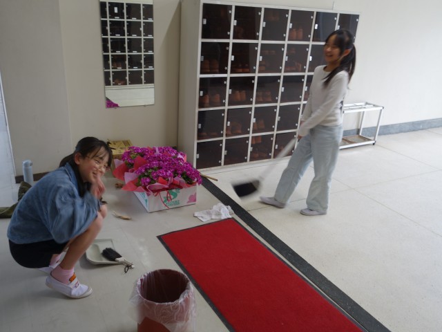 5年生が卒業式の会場準備と校内の清掃を行いました。「6年生に気持ちよく卒業してほしい」という一心で、体育館の中はもちろん、昇降口や各教室、廊下、階段の隅々まで、黙々と丁寧に掃除をしてくれました。その真剣な眼差しからは、もうすぐ最高学年になるという自覚と、お世話になった先輩への感謝の気持ちが伝わってきました。5年生のおかげで、校内がピカピカになり、最高の舞台が整いました。