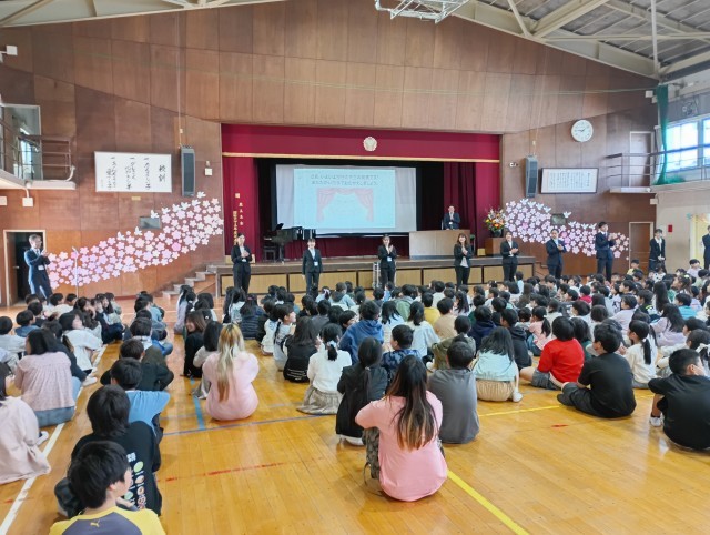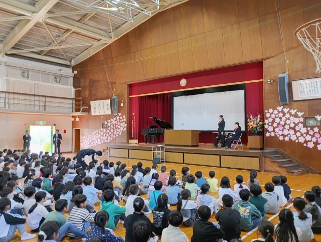 本日、令和8年度の始業式が行われました。 校庭のお花も子どもたちの登校を待っていたかのように咲き誇り、1年生から6年生までの全校児童が、元気にそろいました。校長先生からは、これからの学校生活に向けてあいさつ・えがお・思いやりを大切に、「これらがあふれる学校を、みんなでつくっていきましょう」というお話がありました。式の中で行われた担任発表では、新しい担任の先生が紹介されるたびに、子どもたちから温かい拍手が沸き起こりました。新しい出会いを喜び、温かく迎え入れる子どもたちの姿に、会場はとても優しい空気に包まれました。式の後は、各教室で初めての学級活動(学級開き)が行われました。担任の先生による個性豊かな自己紹介、「こんな1年にしたい!」「こんなクラスにしよう!」という熱いメッセージ、どの教室からも、新しい年度への希望に満ちた笑い声や話し声が聞こえてきました。