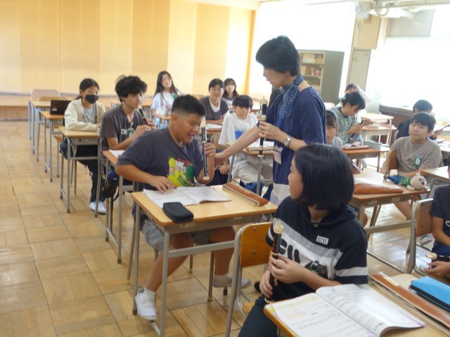 6年2組は、音楽の時間にリコーダーで「カノン」を演奏しました。高いキーの音を出す...