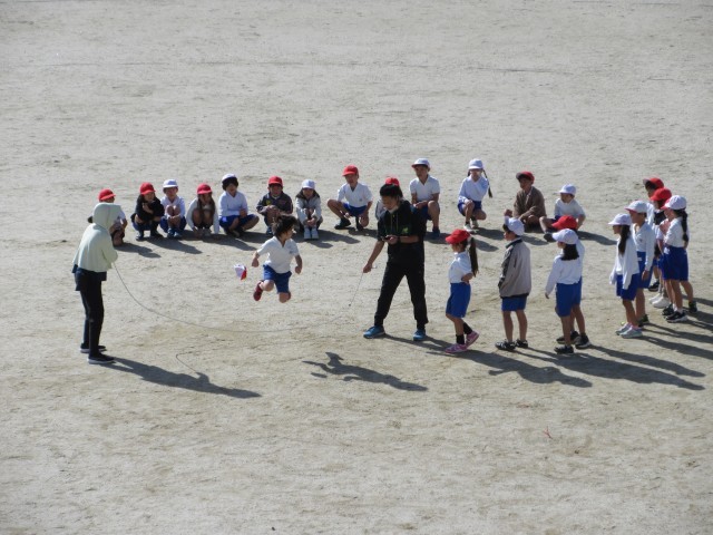 2年生が体育の時間に大縄跳びの練習に取り組みました! 最初は縄に入るタイミング...