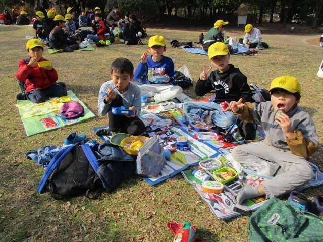 お弁当はみんなにこにこと嬉しそうに見せてくれましたし、美味しそうに食べていました!その後も遊具で思いっきり遊び、楽しそうな様子でした!