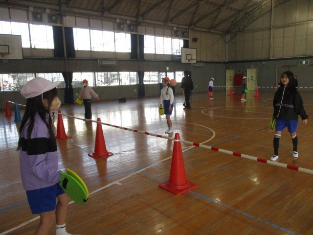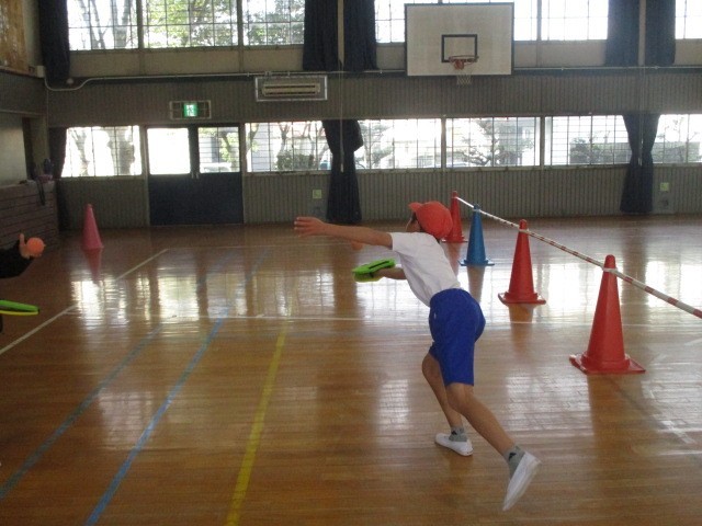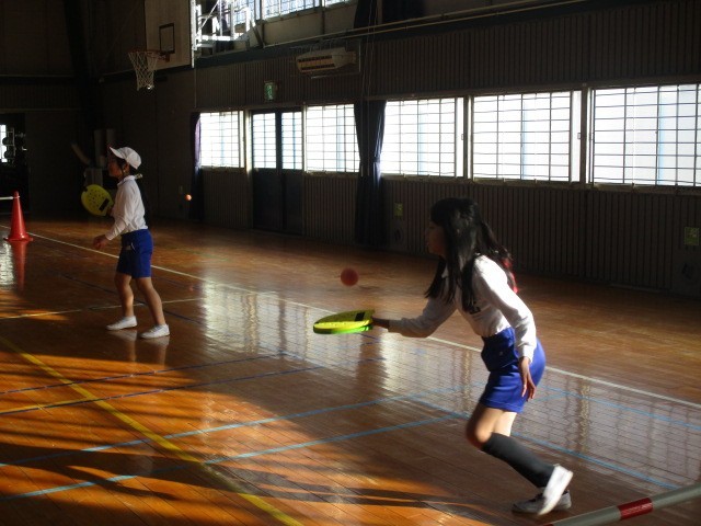 今日は「テニピン」という、ラケットを手にはめて、ボールを打ち返す競技を初めて体験しました。