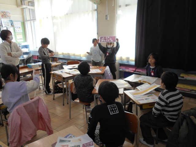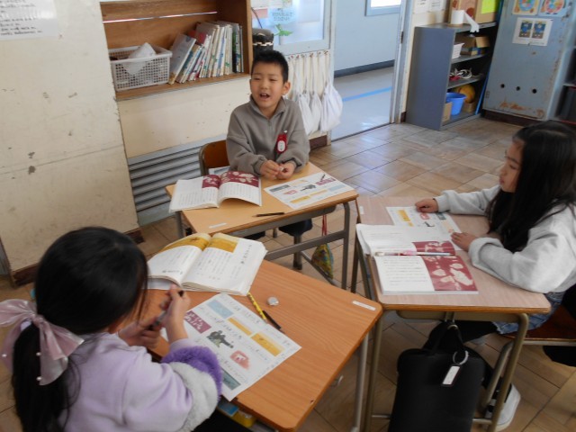 国語では「スーホの白い馬」を学習しています。今日は、挿絵に題名を付けて場面の様子を読み取りました。班の友達と考えを伝え合ったり、意見をまとめたりと楽しく学習することができました。いつも「うしにこタイム」で行っていることが授業でも生かせていて素晴らしいです!