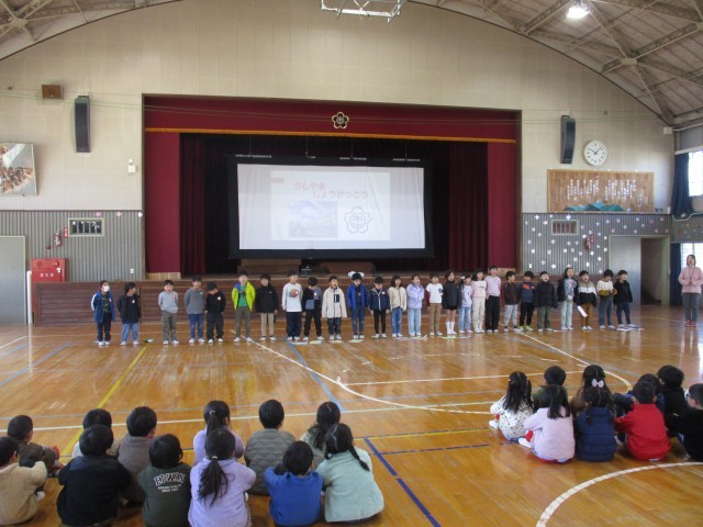 1年生は、幼稚園、保育園の年長さんとの交流会をしました。年長さんたちは、4月から1年生になるので、牛山小の校歌を歌ったり、勉強を紹介したりしました。最後にみんなでじゃんけん列車をして遊びました。はじめは緊張のようすだった年長さんたちも、だんだんと笑顔になり、じゃんけん列車ではすっかり仲良くなれた様子でした。この日のために、みんなで準備や練習をしてきたので、年長さんに喜んでもらえてうれしかったです。4月からは2年生として、1年生をお世話していきましょう。