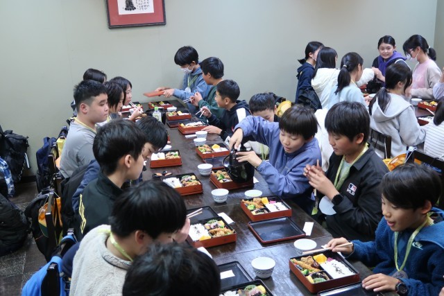本日の校外学習の様子です。からくり実演の見学をしました。外はかなり暑いですが、室内は涼しいので、熱中症にならないように、休憩をしながら見学をしています。このあと、お弁当を食べますが、とても楽しみです。