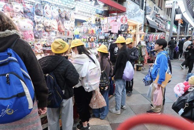 本日の校外学習の様子です。犬山駅に到着し、グループごとに出発しました。1か所目の目的地に着き、練習してきたインタビューに挑戦しています。人もそれほど多くなく、しっかりと学ぶことができています。