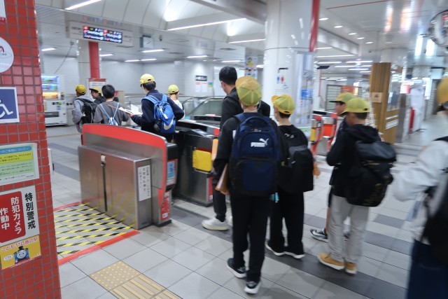 予定時間通りにに班別研修が始まりました。それぞれの研修場所に向けて地下鉄で移動します。無事にホテル本能寺に到着することを祈っています。