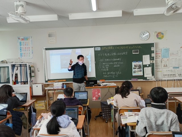 戦争で被爆された方をゲストティーチャーとしてお迎えし、6年生が話を伺いました。