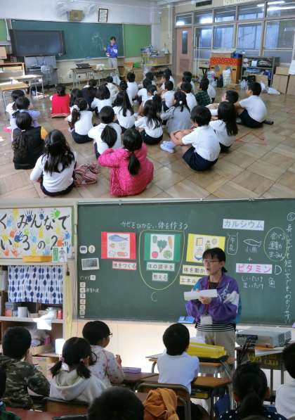 11月16日(水)、3年生の発育測定のようすです。発育測定の後に、保健の先生といっしょに、かぜやインフルエンザの予防について考えました。
