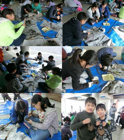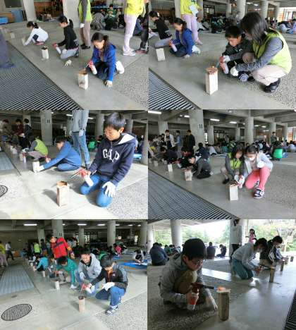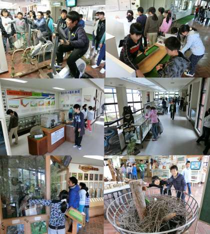 焼き杉工作、自然の家の展示見学のようすです。