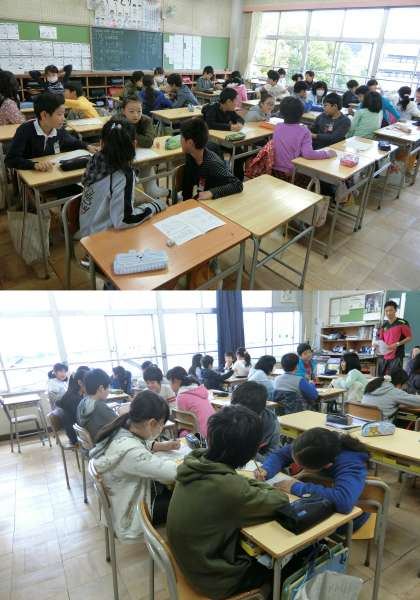 明日11月21日にトヨタ自動車の自動車組立工場の見学へ出かける5年生が、班で話し合いをしていました。