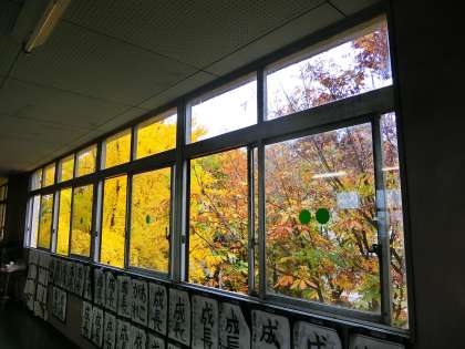 わずかながら雪が降り始めることから、小雪といわれています。例年より遅いようですが、各地で初雪が見られるようになりました。また、陽差しが弱まり、次第に冷え込みが厳しくなる頃です。紅葉が散りはじめ、イチョウの葉が黄色く色づいてきます。鳥居松小学校の体育館前のイチョウが太陽に照らされて黄金色に見え、中庭の木々も色鮮やかです。