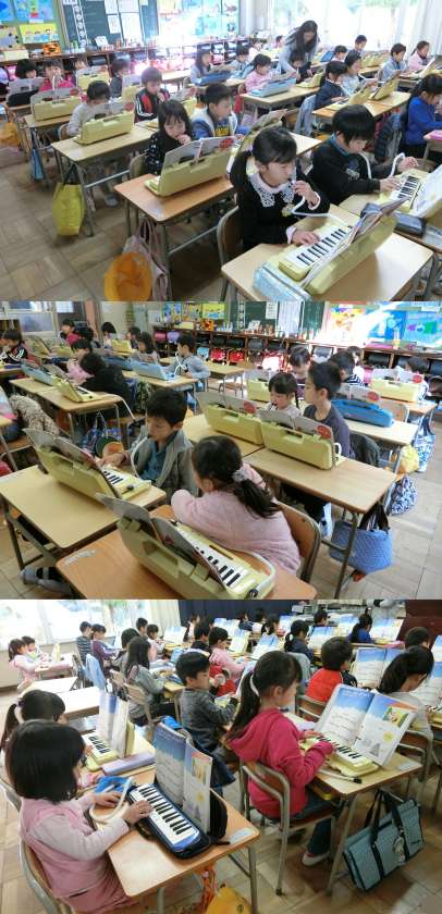 11月24日(木)、1年生の音楽、2年生の生活科、5年生の社会科授業のようすです。1年生は、「きらきら星」を鍵盤ハーモニカで演奏する練習をしていました。2年生は、『みんなでつかう まちのしせつ』の学習で見学に出かける交通児童遊園について、「何ができるか」「どんなものがあるのか」「どんな人がいるのか」、知っていることを話し合っていました。5年生は、先日見学したトヨタ自動車高岡工場と鞍ヶ池公園についてまとめていました。