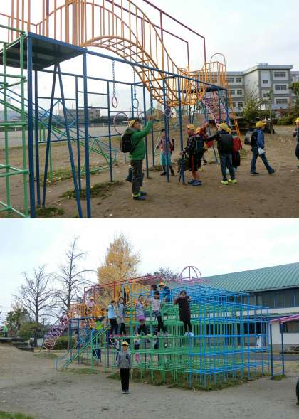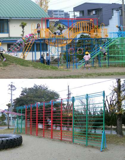 11月中旬から行っていたコンビネーション遊具の塗り替えが終わり、きれいな色になりました。さっそく子どもたちが、楽しそうに遊んでいました。