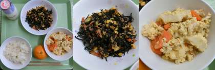 12月5日(月)、今日の給食献立は、「発芽玄米ごはん・牛乳・高野豆腐の卵とじ・ひじきの煮物・みかん 」でした。