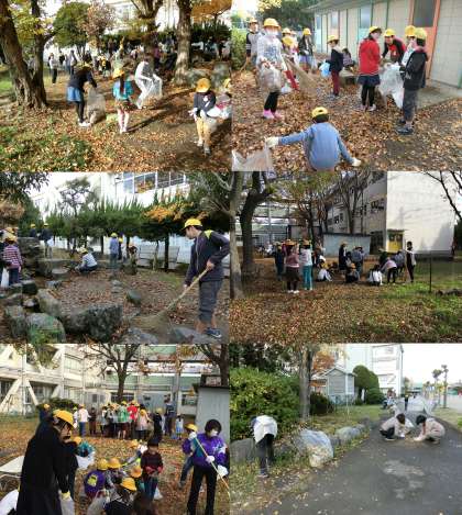 12月5日 校内クリーン作戦 公開日 2016/12/05 更新日 2016/12/05 学校のできごと 12月5日(月)、校内クリーン作戦を行いました。イチョウやケヤキ・カエデの葉がたくさん落ちる時期に、全校児童がなかよし班ごとに担当場所の落ち葉拾いをしました。今日は、多くの保護者の協力もいただき、たくさんの落ち葉を集めることができました。ありがとうございました。