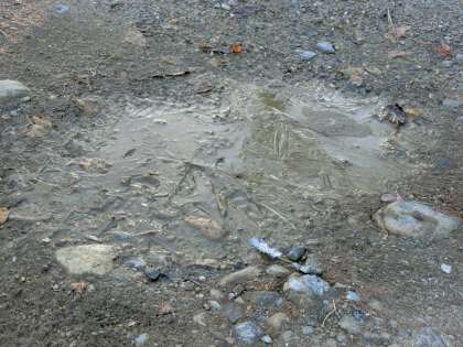 12月12日(月)、今日は、この冬いちばんの冷え込みでした。名古屋地方気象台では、午前6時15分に0.6度の最低気温を記録しました。小運動横の水たまりには、薄い氷が張っていました。