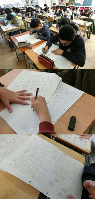 12月16日(金)、6年生が、卒業文集の制作に取り組んでいました。今日は、パソコンを使って書き上げた下書きを見ながら、清書を書いていました。