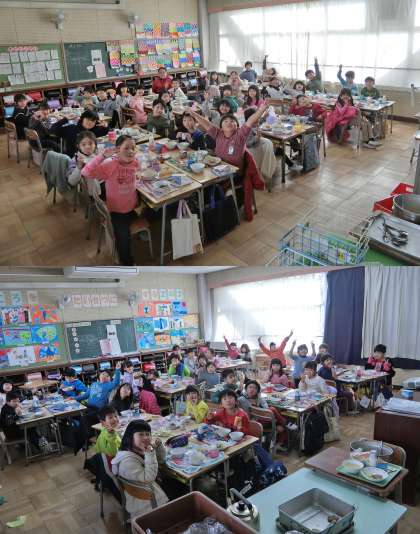 12月21日(火)、給食のようすです。2学期最後の給食は、子どもたちが大すきなケーキ(セレクトデザート)でした。次にみんなといっしょに給食を食べるのは、新年の1月10日です。