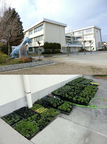1月4日(水)、校内のようすです。今日から仕事始めのところも多いようです。名古屋地方気象台の最高気温は12.2度でしたが、北風が吹いて肌寒さを感じる一日でした。春咲きの花は、元気よく成長しています。