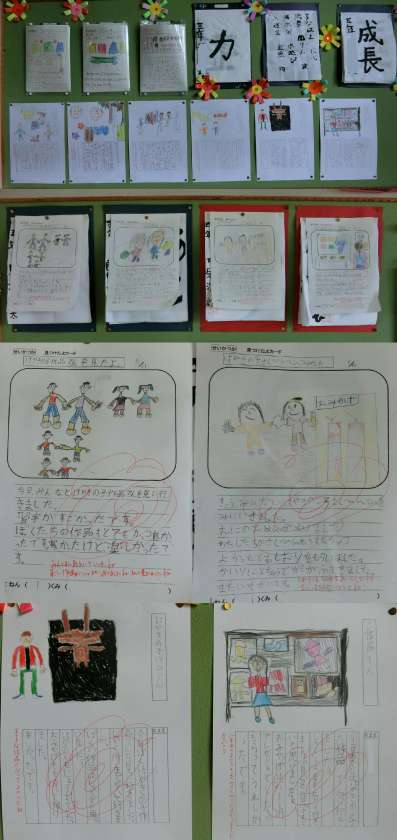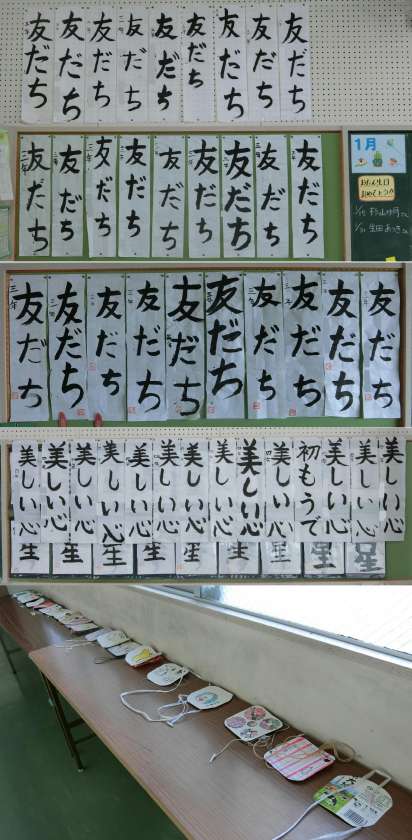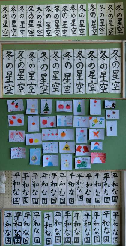 学校の窓 『学級掲示のようす』 公開日 2017/01/15 更新日 2017/01/15 学校の窓 学級掲示板のようすです。冬休みに書いた書き初めや冬休み日誌の課題が掲示されています。かえで・もみじ・いちょう学級は、けやきの子作品展を見学したようすが絵日記にまとめられていました。