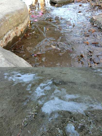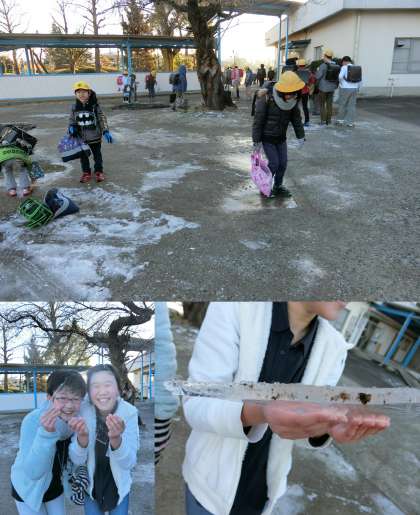 1月17日(火)、寒い朝でした。名古屋地方気象台の最低気温は、午前7時のマイナス1度でした。観察池や校内のいろいろなところに氷が張っていました。