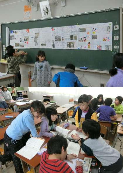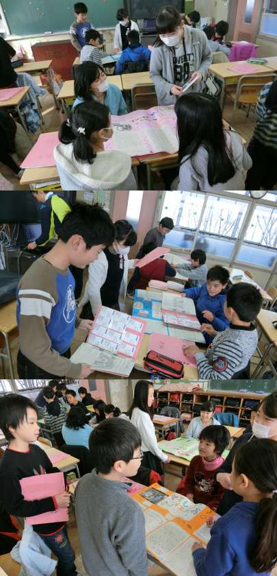 1月20日(金)、2月の学習発表会に向けて、各クラスで準備や練習をすすめています。5年生は、総合的な学習の時間に取り組んだ「離職率ゼロの会社」についてまとめていました。3年生は、グループごとに発表の準備をしていました。